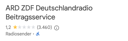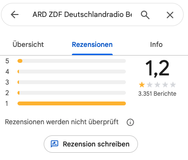 Die “Popularität” verhilft der “GEZ” zu immerhin über 3.500 Rezensionen. Auch das ist aber noch weit entfernt von erstaunlichen 15.000 Bewertungen.