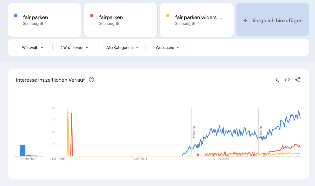 Seit neulich achte ich jedenfalls vermehrt darauf, welche Parkplätze von einem Parkplatzbetreiber verwaltet werden. Vielleicht ist es dem Confirmation Bias geschuldet, aber ich meine, dass die Zahl steigt. Gleichzeitig fällt mir auf, dass sehr viele KundInnen keine Parkscheibe auslegen. Die Kontrolle der Parkflächen wird vermutlich, anders kann ich es mir nicht erklären, nur stichprobenartig durchgeführt. Und die meisten können sich mit der Vorlage des Kassenbons im Nachhinein “freikaufen” - ist es also das verspätete Glücksgefühl, doch noch mit einem Schrecken davongekommen zu sein, dass die KundInnen zu positiven Bewertungen bewegt? Ist die Fair Parken GmbH eigentlich doch ganz fair?