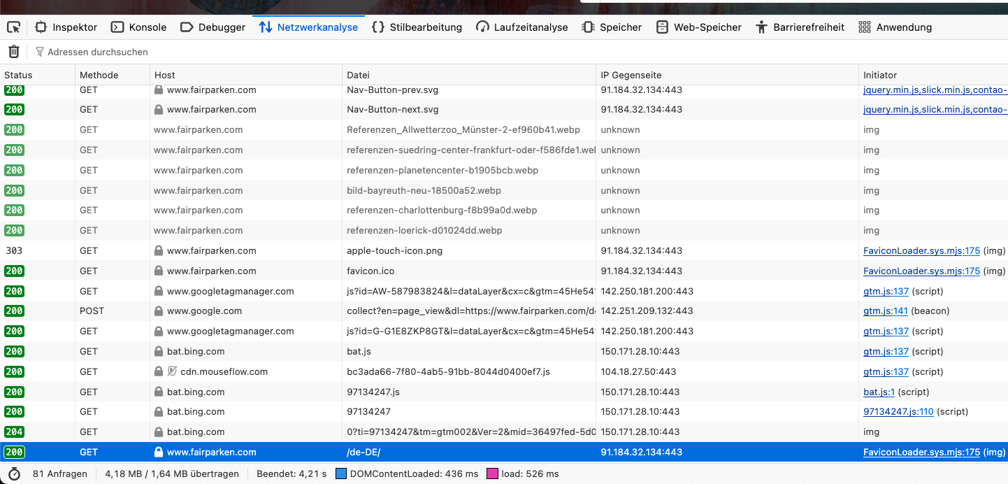 gesetzt werden. Der Initiator dafür ist aber ein Script auf fairparken.com und diese Cookies fallen damit in den Verantwortungsbereich von Fair Parken.