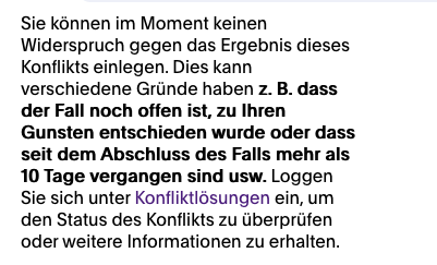 Nein, es versteckt sich auch nicht hinter den weißen Flächen. Und nein, auch hinter dem Feedback-Link gibt es keine entsprechende Option, den Widerspruch einzulegen. Die einzige Möglichkeit ist der Klick auf die Transaktion. So gelangt man zur Übersicht derselben. Dort kommt man über “Problem melden” zurück zu eben dieser Übersicht – ein Kreislauf.