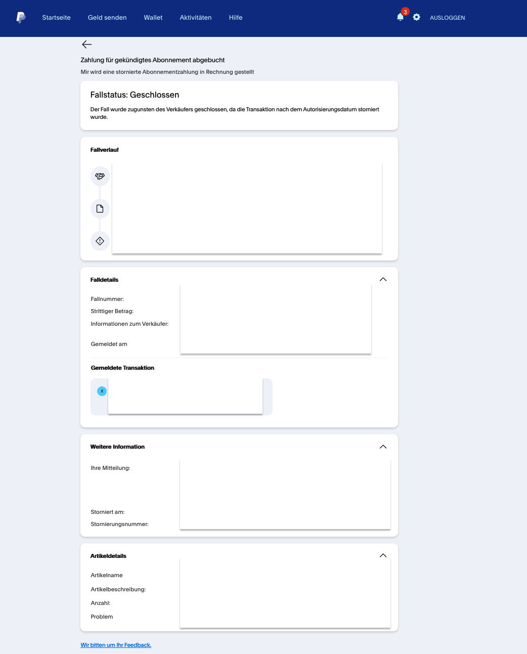 Also muss man sich aufmachen und den strittigen Fall auf der Website von PayPal erneut öffnen.