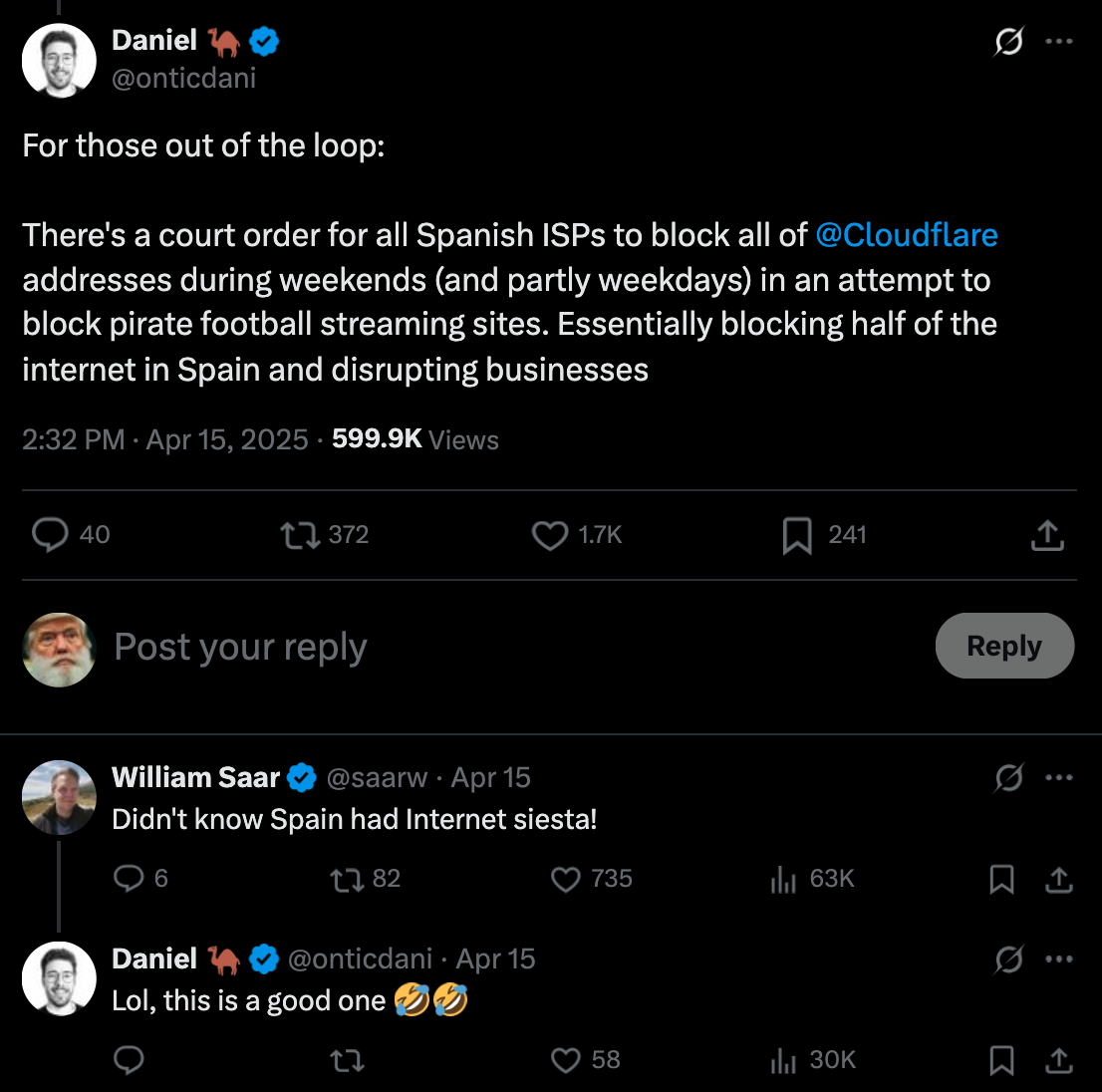 1. Spanien blockiert Cloudflare-Traffic während der Übertragung ihrer Fußballspiele