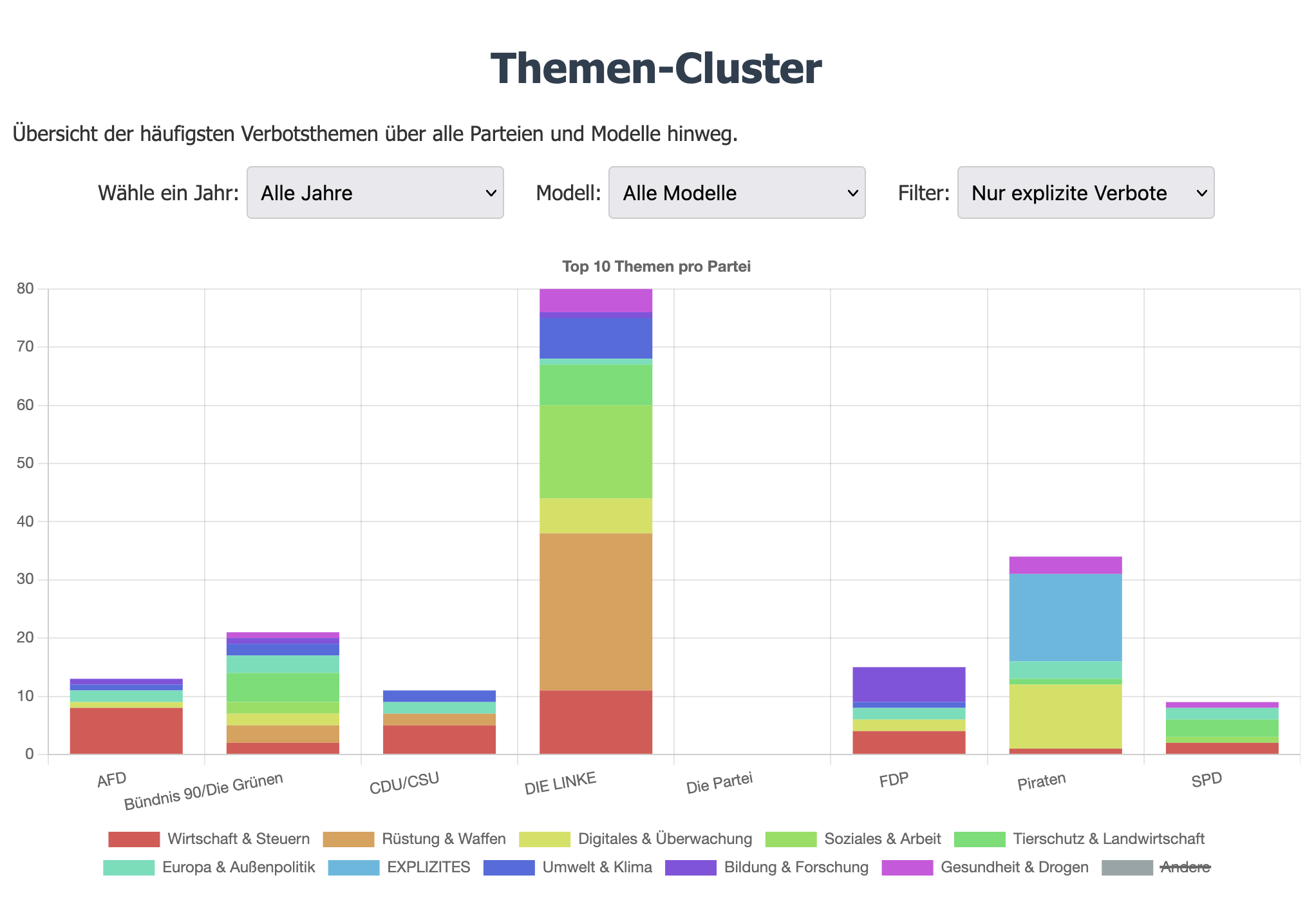 Das Dashboard befindet sich hier: https://verbote.nickyreinert.de . Sofern nicht anders angegeben, beziehe ich mich auf die Parteiprogramme von 2021.