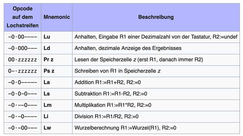 OpCodes werden wiederum durch Mnemonics repräsentiert, eine etwas besser lesbare Beschreibung des Befehls. Die Menge der Mnemonics ergibt die Assemblersprache.